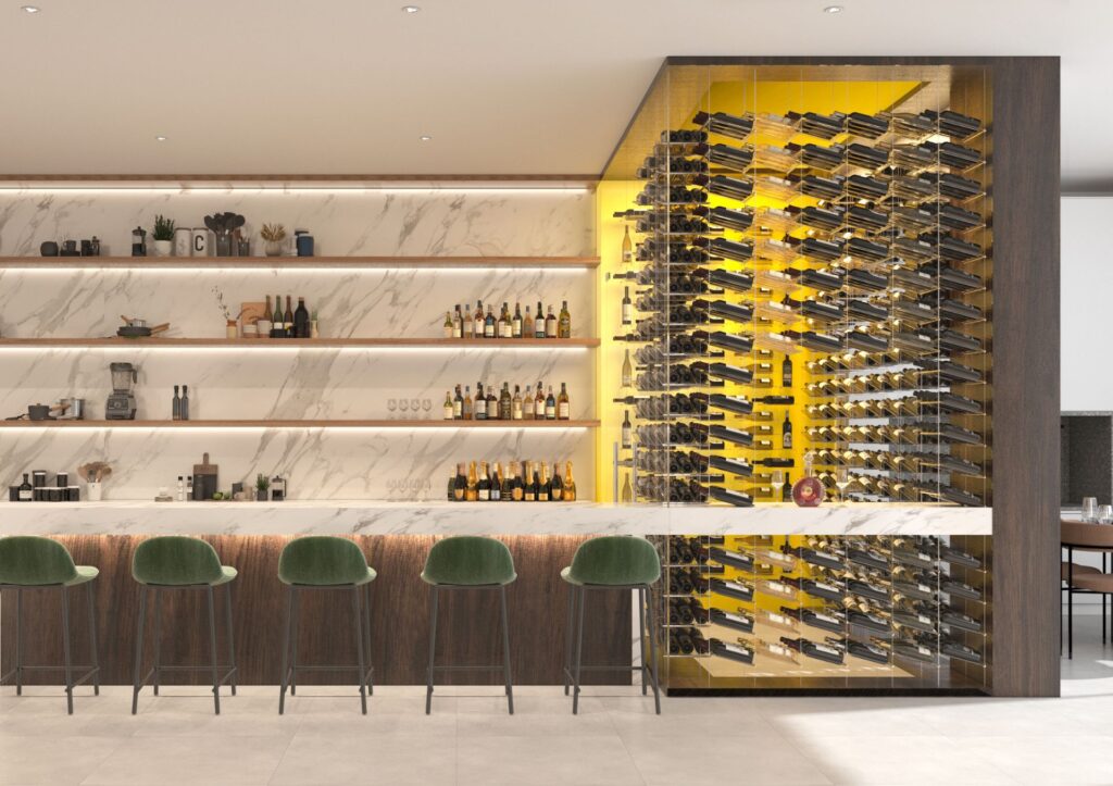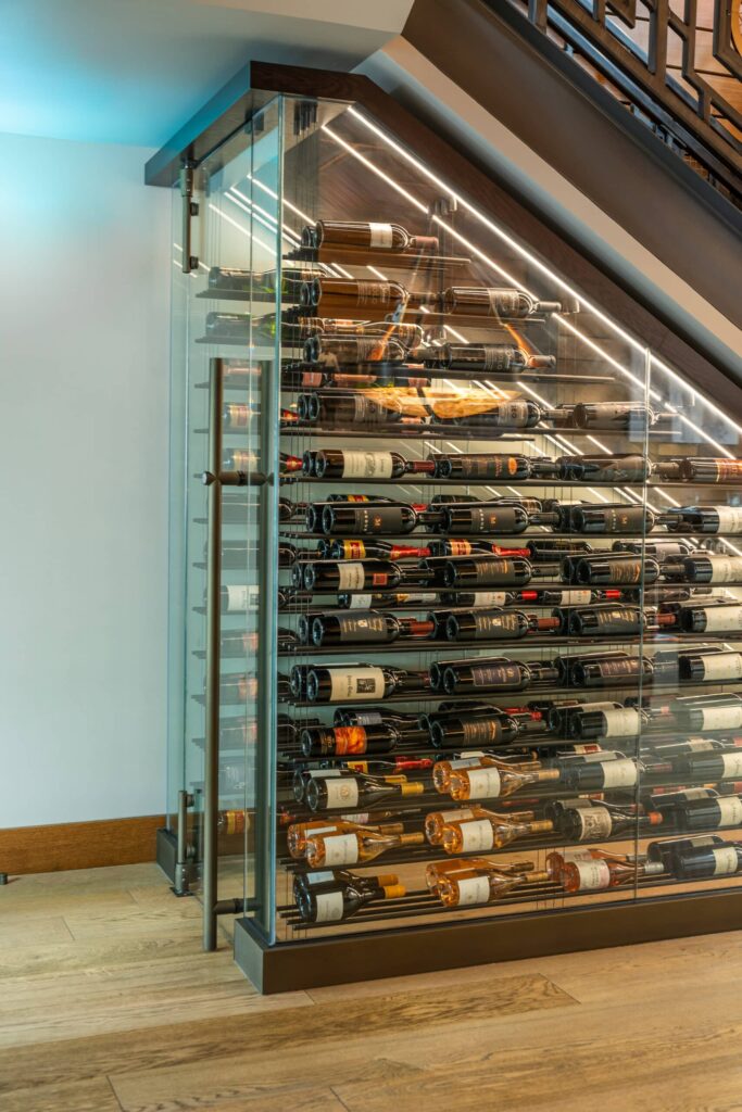 We translate the brief into layouts, elevations, and material palettes. Options include built-in wine cabinets, racking compositions, glass enclosures, and feature lighting.